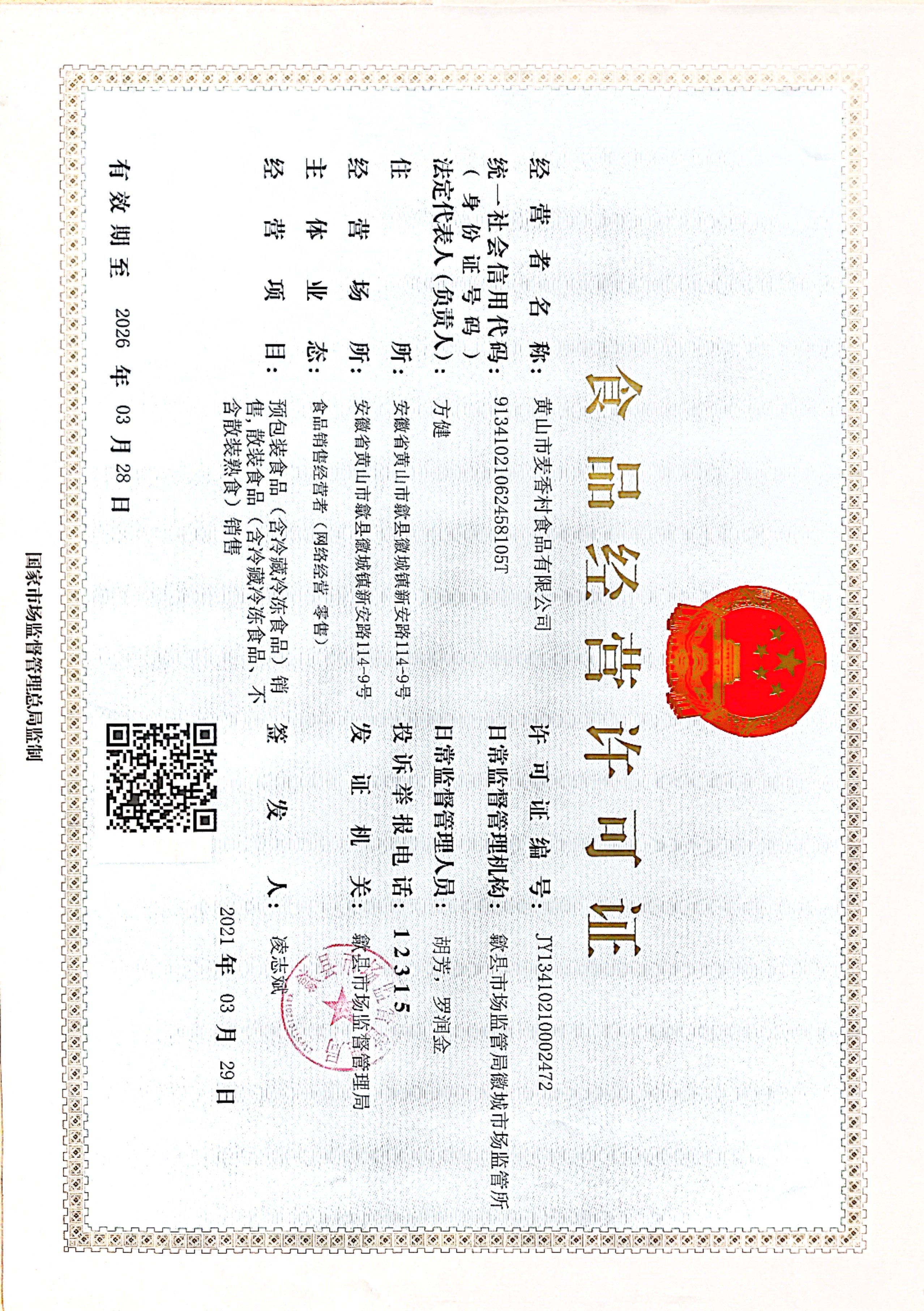黃山市麥香村食品有限公司 版權(quán)所有 免責(zé)聲明 皖I(lǐng)CP備2022002499號(hào)-1 營(yíng)業(yè)執(zhí)照 食品生產(chǎn)許可證 食品經(jīng)營(yíng)許可證技術(shù)支持:網(wǎng)新科技(www.ibw.cn)