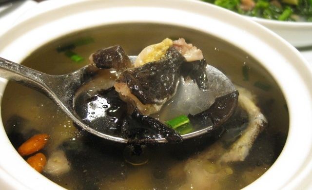 黃山雙石: 黃山雙石也是一道傳統(tǒng)的徽州菜肴。因其選用徽州當(dāng)?shù)靥厣氖褪u為食材加工、烹飪,故被稱為“雙石”。做法:將石雞宰殺后清理干凈,放鹽抹勻,加入紅薯粉上漿,再放入開(kāi)水中脫生,排去多余血水;將石耳洗凈去根,以溫水泡發(fā),用事先備好的高湯蒸十分鐘左右,再與石雞一起放入燉盅,加入生姜、蒜、少量白糖、高湯,慢火燉煮。